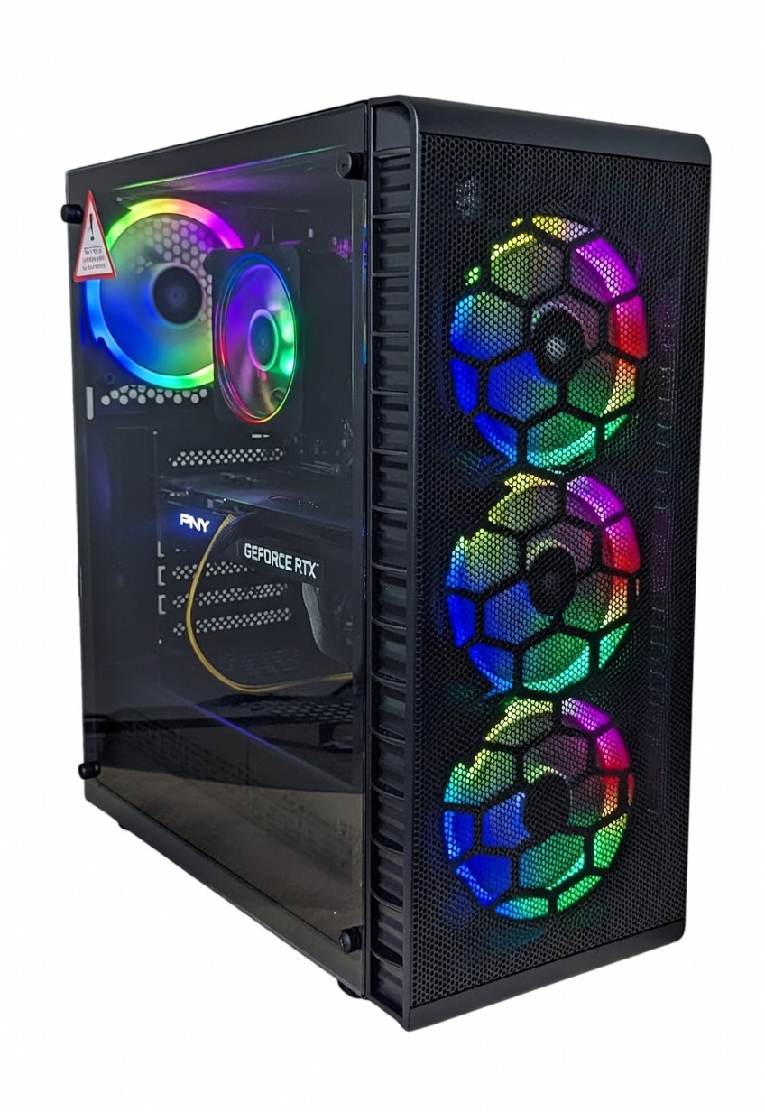 Ein Einsteiger Gamer PC – nochmals frisch für euch gebaut als Sonderposten. 1 x Verfügbar. Ideal z.B. für den Enkel der gerne z.B. Landwirtschaftssimulator spielt. Mit einem Ryzen 5600 Prozessor sowie 16GB Arbeitsspeicher, einem A520 Mainboard sowie einer schnellen 1TB (1000GB) SSD sowie einem schicken Gamer Gehäuse von KOLINK mit bunter RGB Beleuchtung. Siehe Original Foto